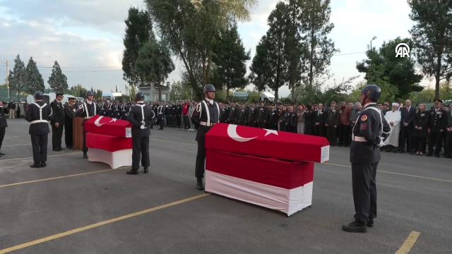 Valilikten yapılan açıklamaya göre, trafik kazasında ÅŸehit olan jandarma astsubay kıdemli çavuÅŸlar Tacettin Gün (39) ve Hakkı Eryılmaz (28) için Cengiz Topel Havalimanı’nda tören düzenlendi.